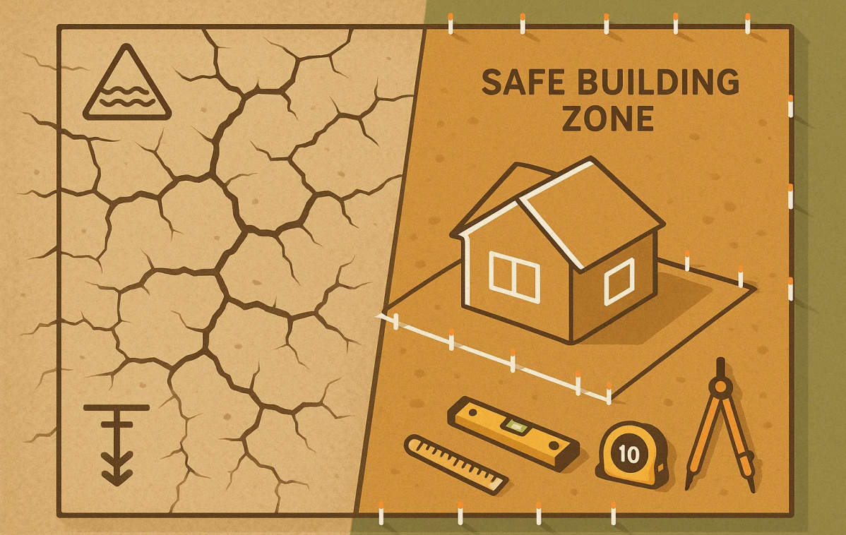 Na tym etapie analizujemy działkę bardziej szczegółowo, by wskazać najlepsze miejsce pod budowę. Zdarza się, że połowa działki ma dobre warunki nośne, a druga połowa to grunty słabonośne. Przesunięcie budynku o kilkanaście metrów może oznaczać różnicę rzędu dziesiątek tysięcy złotych w kosztach fundamentów.